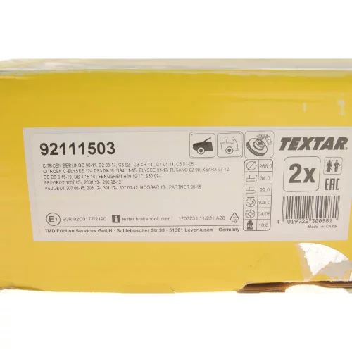 92111503 TEXTAR Диск гальмівний
