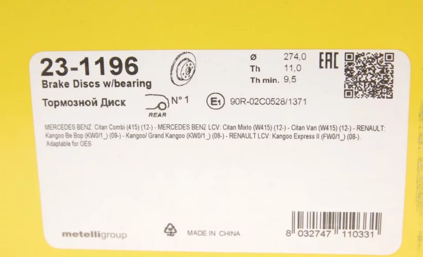 | Толщина тормозного диска (мм) | 11 |