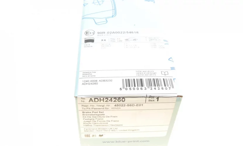 ADH24260 BLUE PRINT Колодки гальмівні дискові передні (вир-во Blue Print)