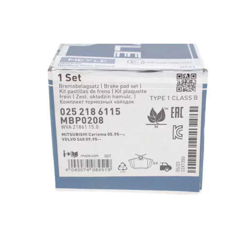 0252186115 MEYLE Комплект гальмівних колодок