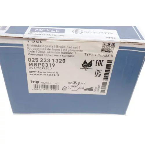 0252331320 MEYLE Комплект гальмівних колодок