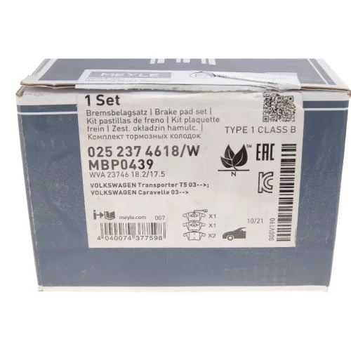 0252374618W MEYLE Комплект гальмівних колодок