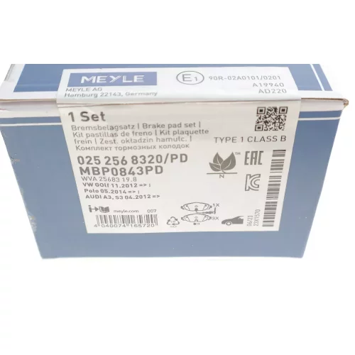 0252568320PD MEYLE Комплект гальмівних колодок