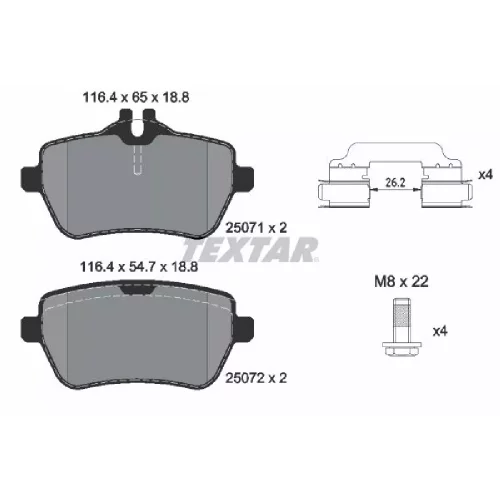 2507101 TEXTAR Комплект гальмівних колодок