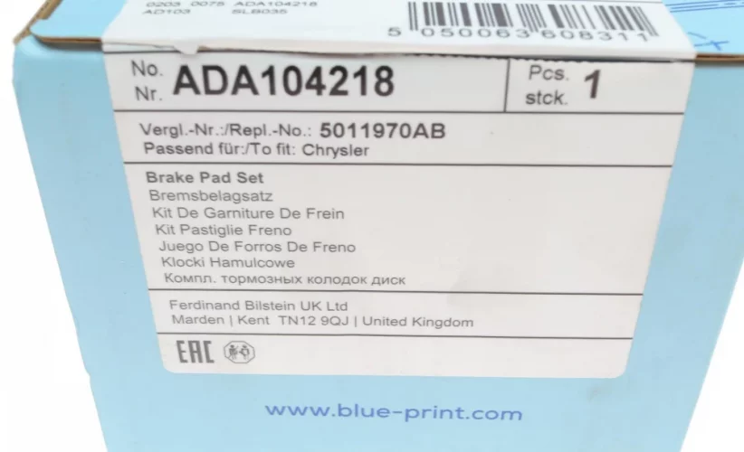 ADA104218 BLUE PRINT Комплект гальмівних колодок