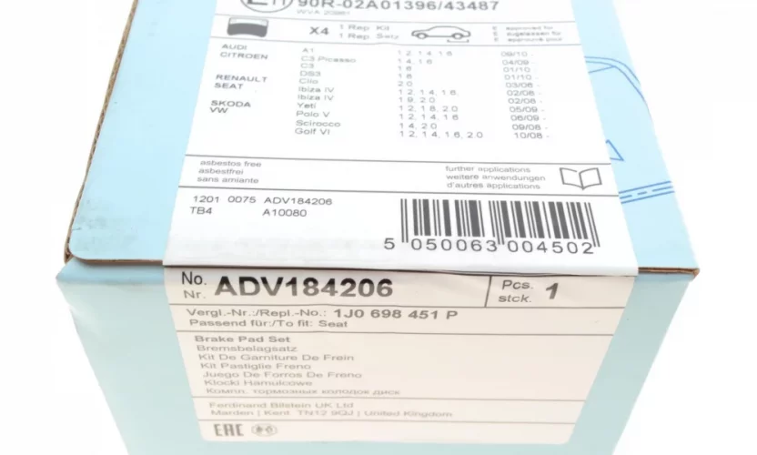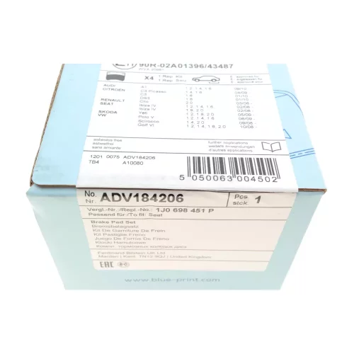 | Комплектующие, колодки дискового тормоза | BLUE PRINT | ADV1848601 |