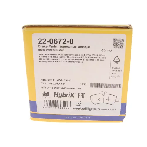 2206720 METELLI Комплект гальмівних колодок (дискових)