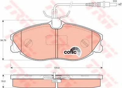 GDB1259 TRW Комплект гальмівних колодок передн (з комплектуючими з гвинтами гальмівного супорта), CITROEN XSARA, ZX PEUGEOT 306, 406, 607 1.9D-3.0 11.95-02.06