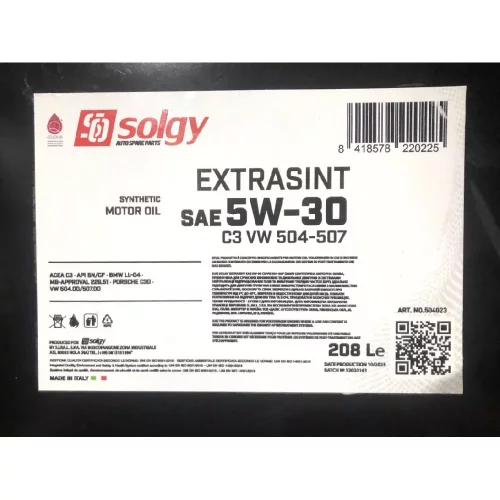 504023 SOLGY Олива моторна EXTRASINT SAE 5W-30 C3 VW 504-507 (208 L)
