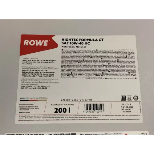 20003200099 ROWE Олива моторна HIGHTEC FORMULA GT SAE 10W-40 HC (200 L)