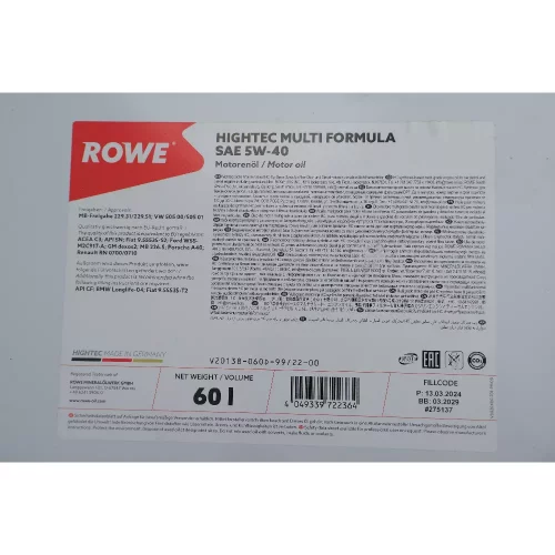 20138060D99 ROWE Олива моторна HIGHTEC MULTI FORMULA SAE 5W-40 (60 L)