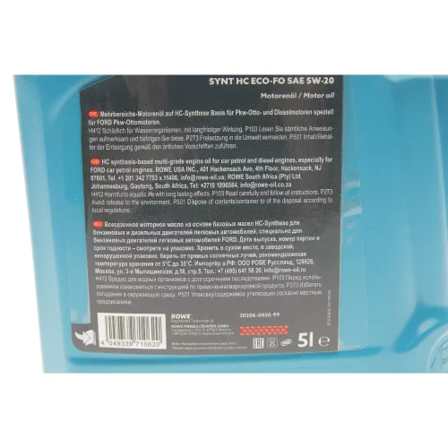 20206005099 ROWE Олива моторна HIGHTEC SYNT HC ECO-FO SAE 5W-20 (5 L)