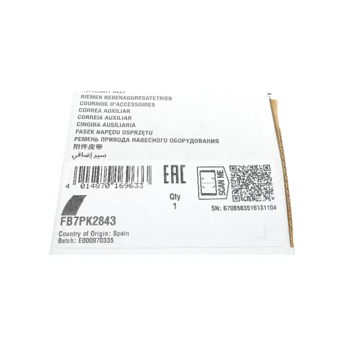 FB7PK2843 INA Ремінь генератора поліклиновий
