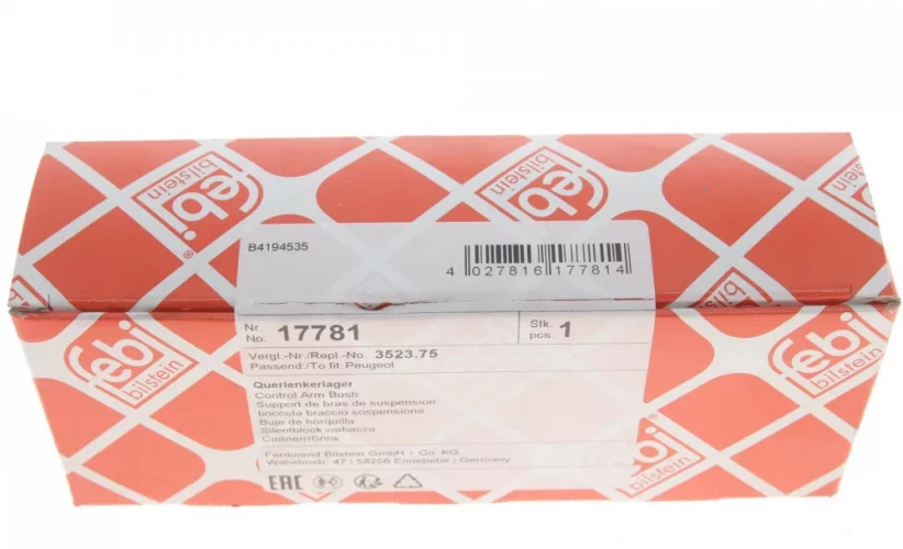 17781 FEBI BILSTEIN Сайлентблок важеля CITROEN BERLINGO (00-) передн. вісь, задн. (Вир-во Febi)