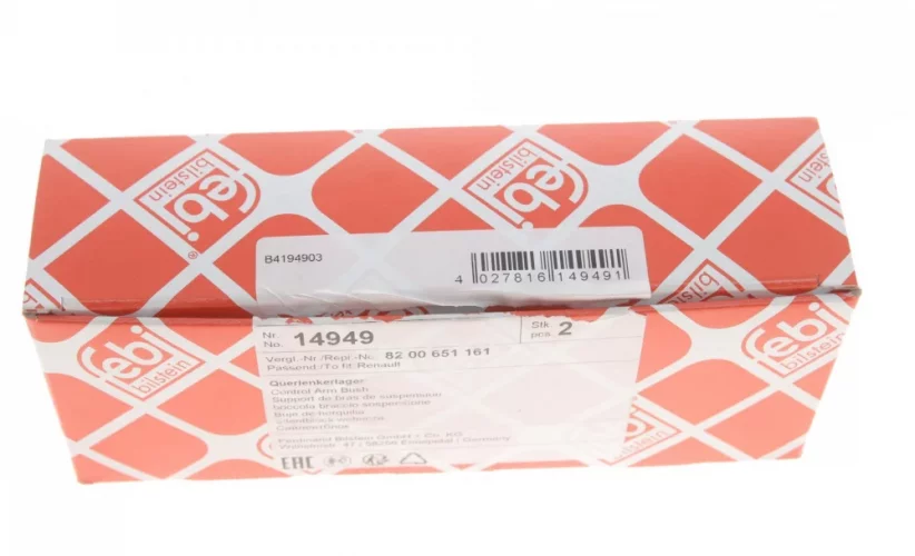 14949 FEBI BILSTEIN Сайлентблок важеля RENAULT KANGOO 1.2, 1.4, 1.9D (01-) передн. вісь (Вир-во Febi)